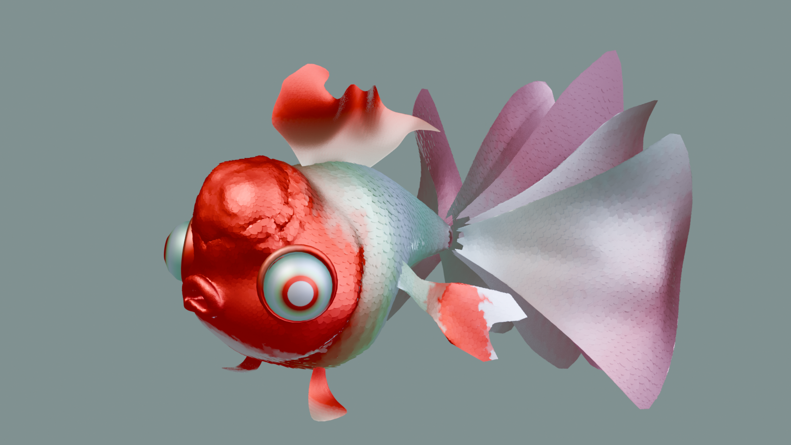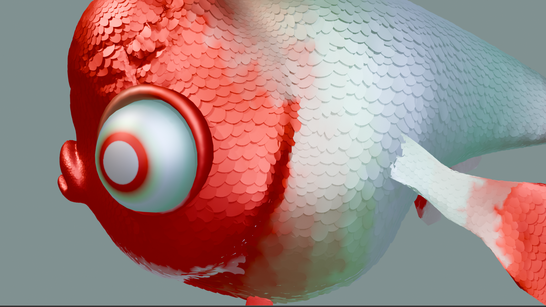 The reason I’m using only nodes is that it‘s hard to get a nice look with traditional methods for my character. Then with nodes, I can adjust the goldfish’s color and materials anytime, which works well for the film. A lot of the cool effects actually came up during playing and error, and I can tweak them whenever I need.
