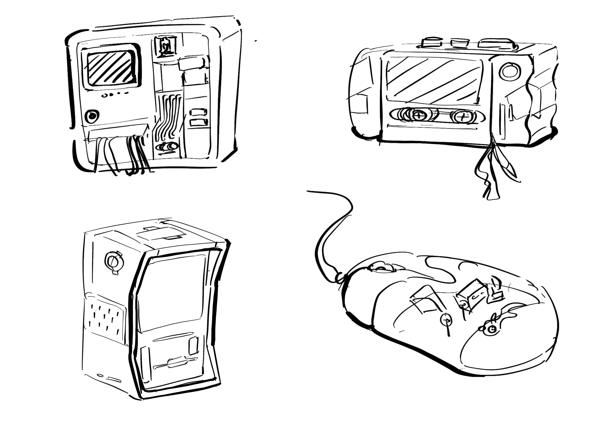 I spent some time on this phone, but I decided to give it up. This is just a continuation of the style of last week's phone model, but I always had a feeling that something was wrong, and after thinking about it I realized that it was because there was still a need for uniformity in style when it came to mixed media. If I use products from different eras in reality as a reference and use them directly, I believe they will be ugly in a single film, without aesthetic consideration. My answer is that I refer all electronic design to cyberpunk, or I don't know exactly how to explain it, but it is a kind of design that is not in line with practical purposes, it is both technological and retro. I made the following initial four designs and started building new models. I think I still have some designs that don't have a clear visual image, but I have an idea. For example, the main meta-universe scene, I have been troubled by this part, because it is still just a concept, there is no clear mainstream style on the market, I can think of only the one made by Zuckerberg, but it is not successful. I guess I got stuck with those unsuccessful references and wanted to build my own world. I really like the retro aesthetic. I think the next week will take a lot of time on the sets and props, and if they are completed, it will be more than half of the preparation. At present, I have planned to unify the style of props to help me complete the scene construction, and combine plants and machinery. Besides, I have studied some art history, and I want to take Dada and Surrealism as the ideological guidance to create the meta-universe aesthetics of this short film.