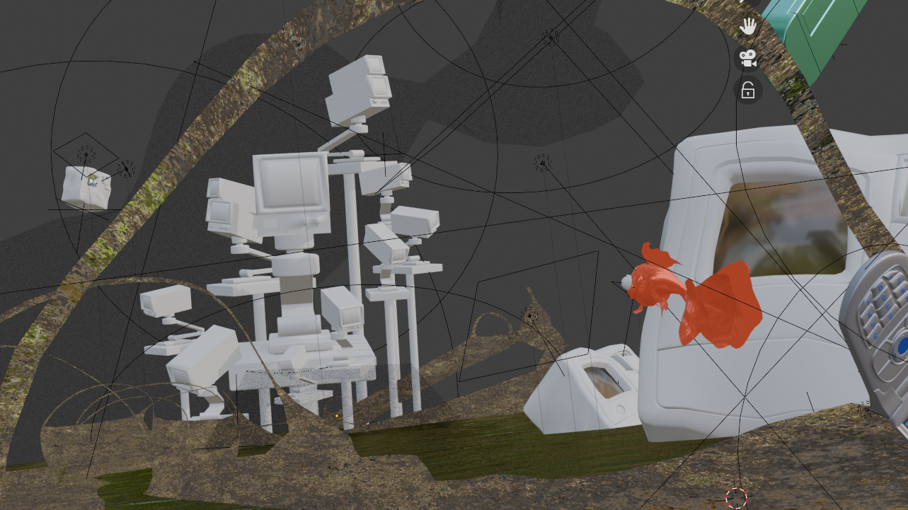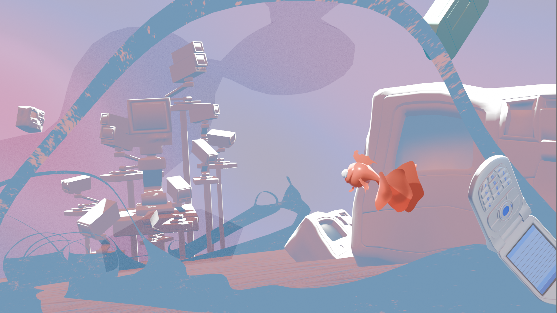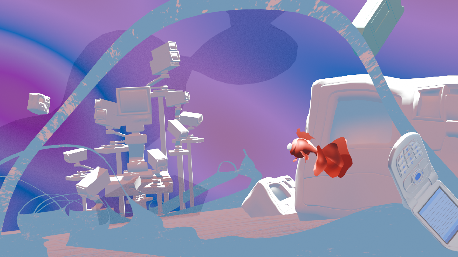 Secondly, I used acidism for the props design, which comes from the Y2K style. But I’ll combine past UI designs to improve the props, making something impractical, purely for visuals. I like vintage things, so my favorite parts in the short film, like the fish tank toy and game console, are also based on old objects, and I will modify them in the same way. This way, boring mechanical designs become more fun. Later, I’ll add elements like coral with changing textures to enhance the unreal feeling.