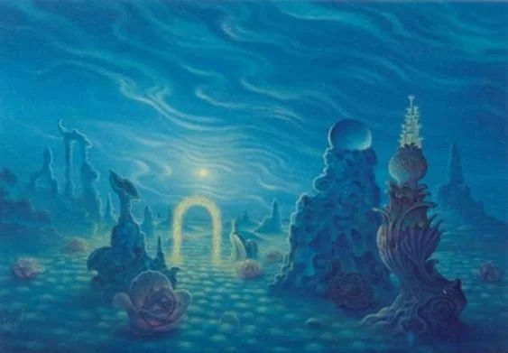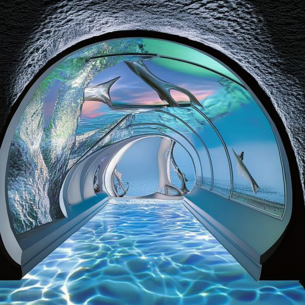 I chose surrealism as the base for the scene layout. Breton, who proposed it, was influenced by Freud, The visual style is also very appealing. But surrealist paintings are flat, and the sense of space is weak, which makes it hard to convert them into 3D. So, I used the aquarium tunnel as a visual guide (the design of the tunnel also includes the style of props I’ll introduce later). This gives a clear path: the goldfish won’t be able to break through this route at first but will later choose the goal in the scene. Both the start and the end have shapes to make the audience feel the space.